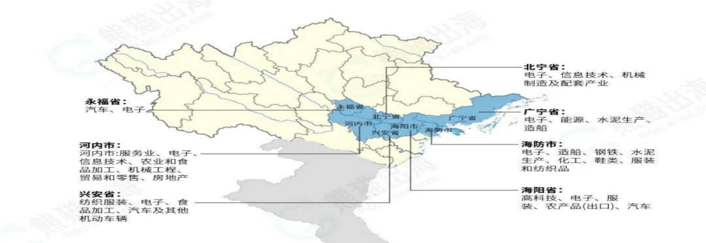 北部财产集群堆积区:以河内为核心的北部经济区是越南电子制制、汽车制制、冶金钢铁、机械制制、材料手艺的财产堆积区。集中正在手艺设备、零部件、原材料、东西及新手艺等。支撑单元:越南工贸部、越南科学手艺部、越南打算投资部、河内市人平易近委员会、胡志明市人平易近委员会、越南工商结合会、越南商业推进局、河内市工贸局、胡志明市工贸局/越南工业区办理委员会